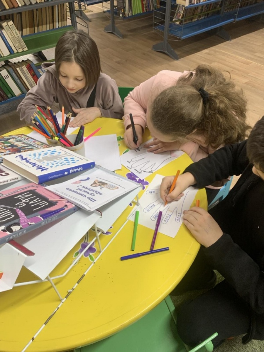Особливе зацікавлення викликала вправа “5 доріг допомоги”: діти малювали долоньки та на кожному пальці позначали одну важливу людину чи місце, куди можна звернутися за підтримкою. Це допомогло дітям усвідомити, що поруч завжди є ті, хто готовий допомогти — друзі, батьки, вчителі, бібліотекарі, служби підтримки.