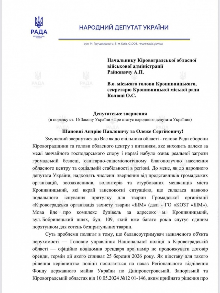 Фактично, поліція, як уповноважений орган управління, запустила механізм, який тепер юридично унеможливлює збереження притулку. Відповіді посадовців на десятки моїх депутатських звернень зводяться до посилання на вимоги законів про приватизацію та оренду, повністю ігноруючи соціальні наслідки такого рішення. Поліція (ГУНП) розводить руками: мовляв, об'єкт у списку на продаж (при тому, що вони самі його туди подали), тому продовжити оренду «не маємо повноважень». ОВА лише «вивчає обставини» та обіцяє наради, поки час спливає. Міська влада робить вигляд, що проблеми не існує.
