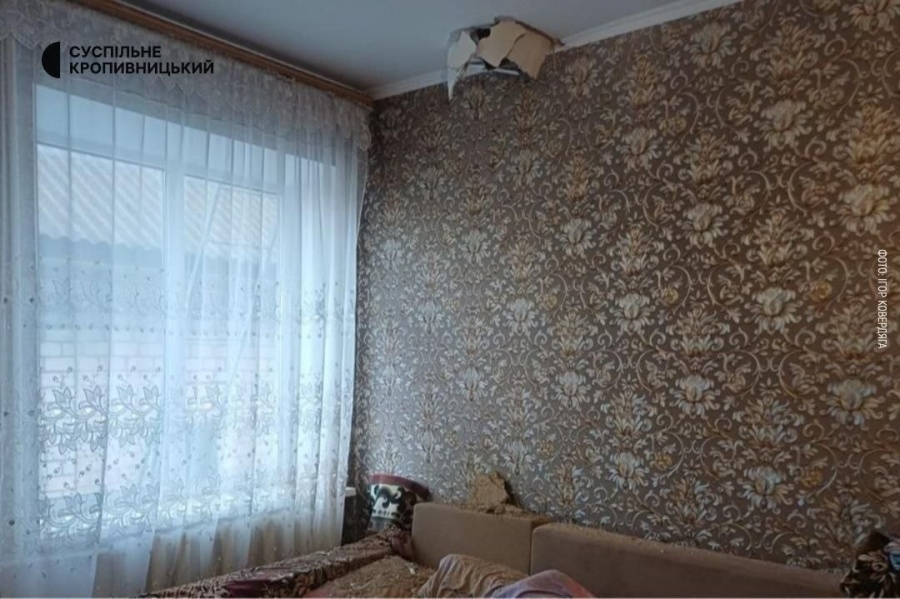 На Кіровоградщині дрон впав на подвір’я: уламки пробили дах й стелю будинку