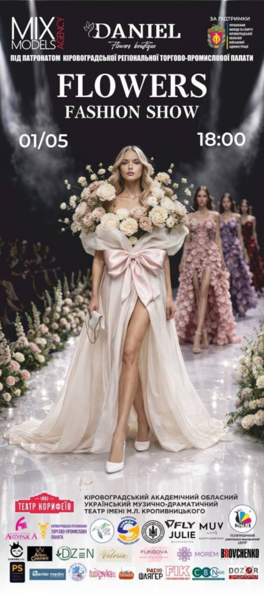 У п'ятницю 1 травня о 18:00 у Кіровоградському академічному українському музично-драматичному театрі імені Марка Кропивницького відбудеться прем’єра масштабного fashion-перформансу Flowers Fashion Show.