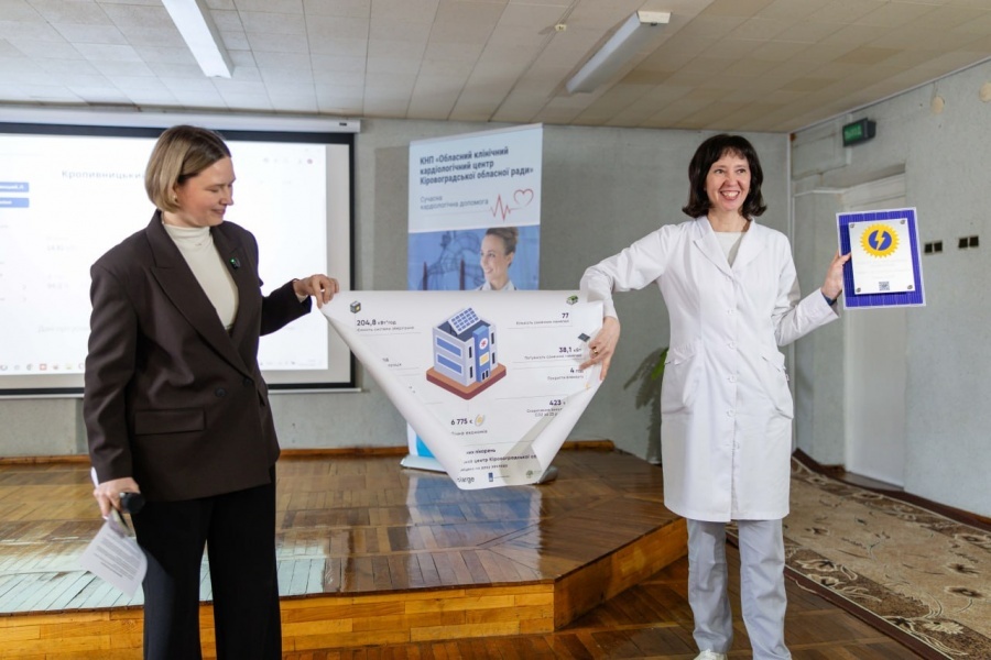 Кропивницький кардіоцентр - це надкластерний заклад, через який щороку проходить майже 36 тисяч людей. Щоб захистити цей потік пацієнтів, на даху встановили 77 сонячних панелей, підсилених системою зберігання енергії на 204,8 кВт на годину - найбільшою з усіх побудованих раніше станцій. Цього ресурсу вистачає, щоб підтримувати роботу операційних та ліфтів для транспортування хворих протягом 4 годин під час повного блекауту.