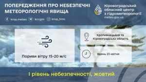 Вдень 23 квітня очікуються пориви вітру 15-20 м/с .