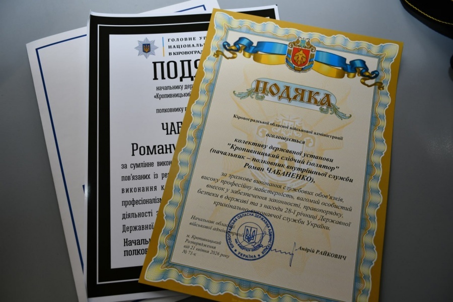 Колектив ДКВС привітав перший заступник начальника Кіровоградської ОВА Юрій Миколаєнко. У заході також взяли участь начальник установи Роман Чабаненко, представники керівництва Нацполіції в області та командування військової частини 3117.