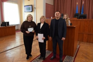 Секретар міської ради Олег Колюка та начальниця управління освіти Лариса Костенко вручили керівникам закладів Сертифікати на відповідні грошові нагороди.