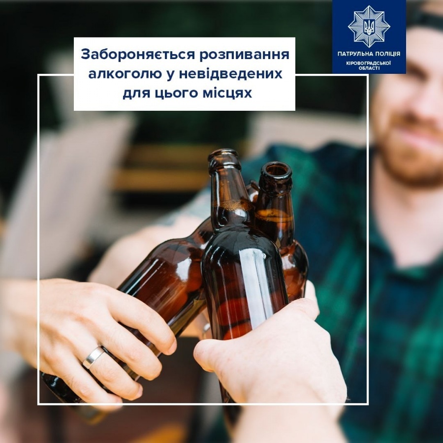 Поліція нагадує про відповідальність за розпивання алкогольних напоїв у невідведених для цього місцях